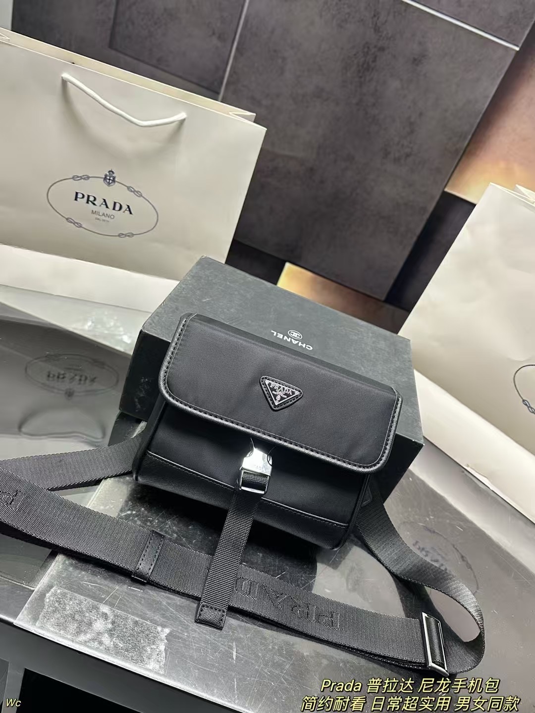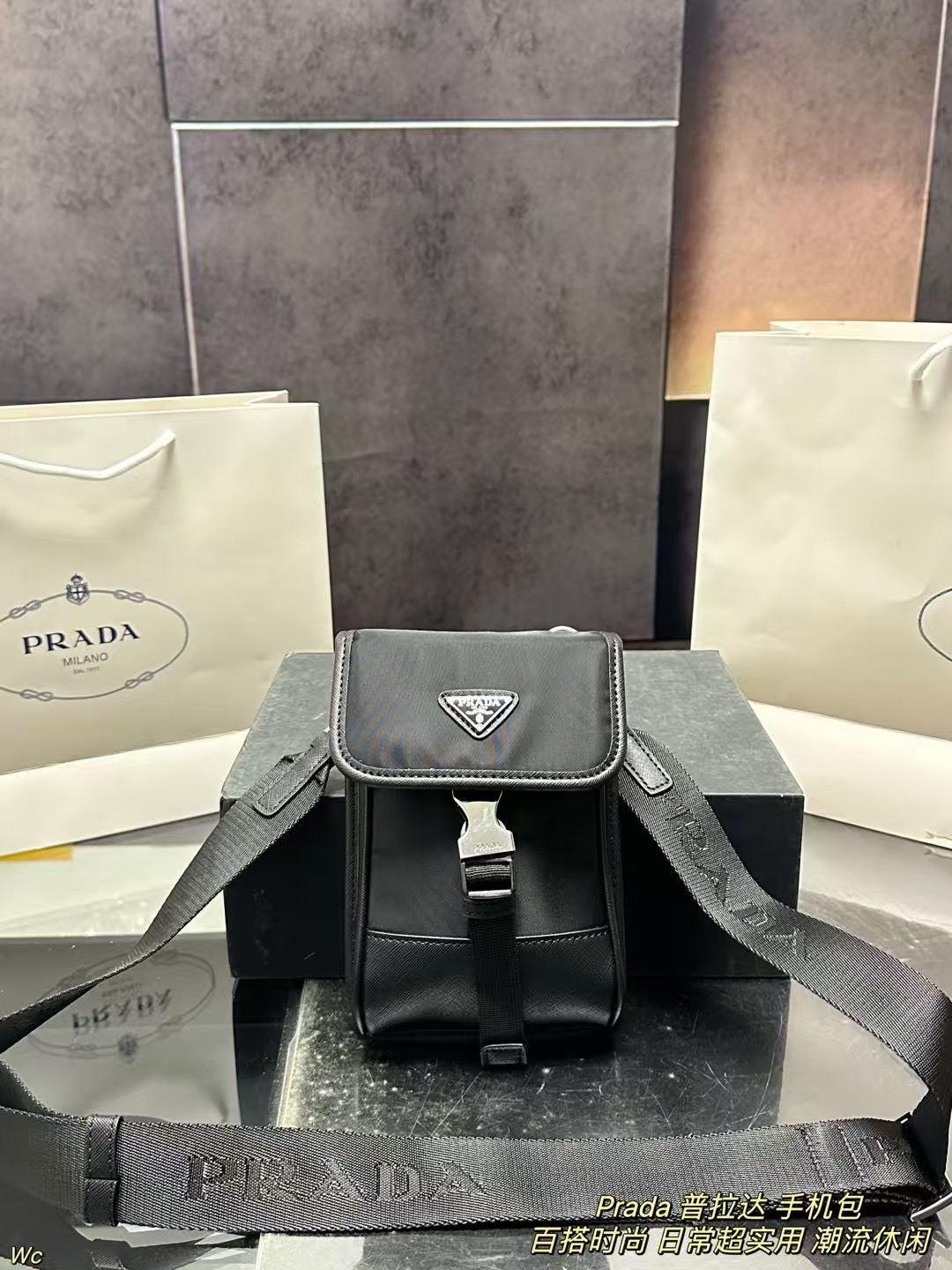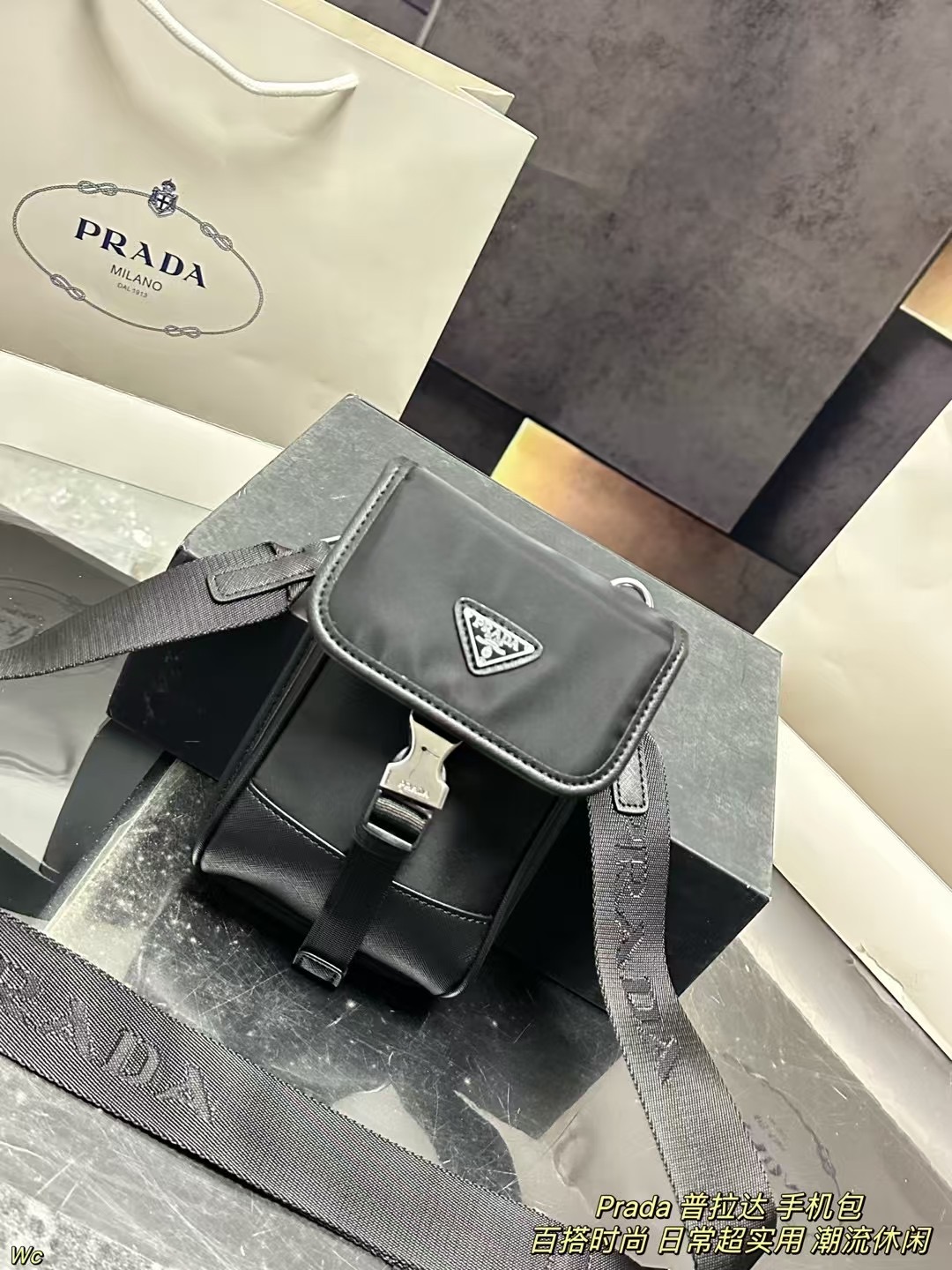 Prada Phone Bag (13×20cm) with Box - Adjustable Chain & Slim Profile