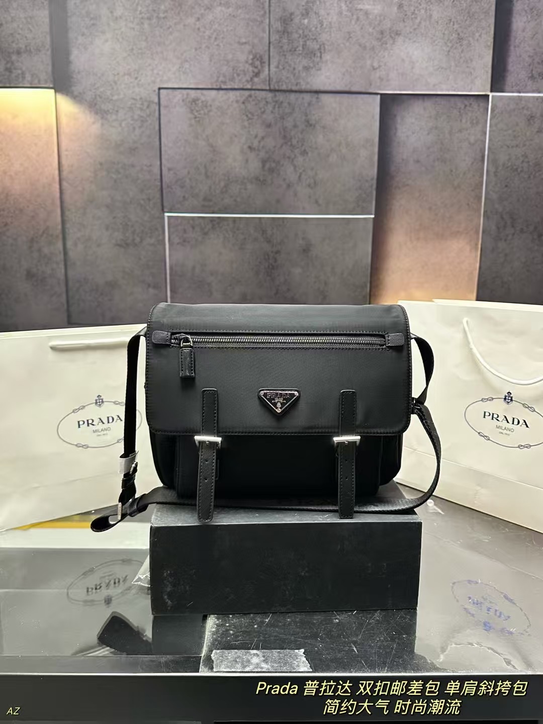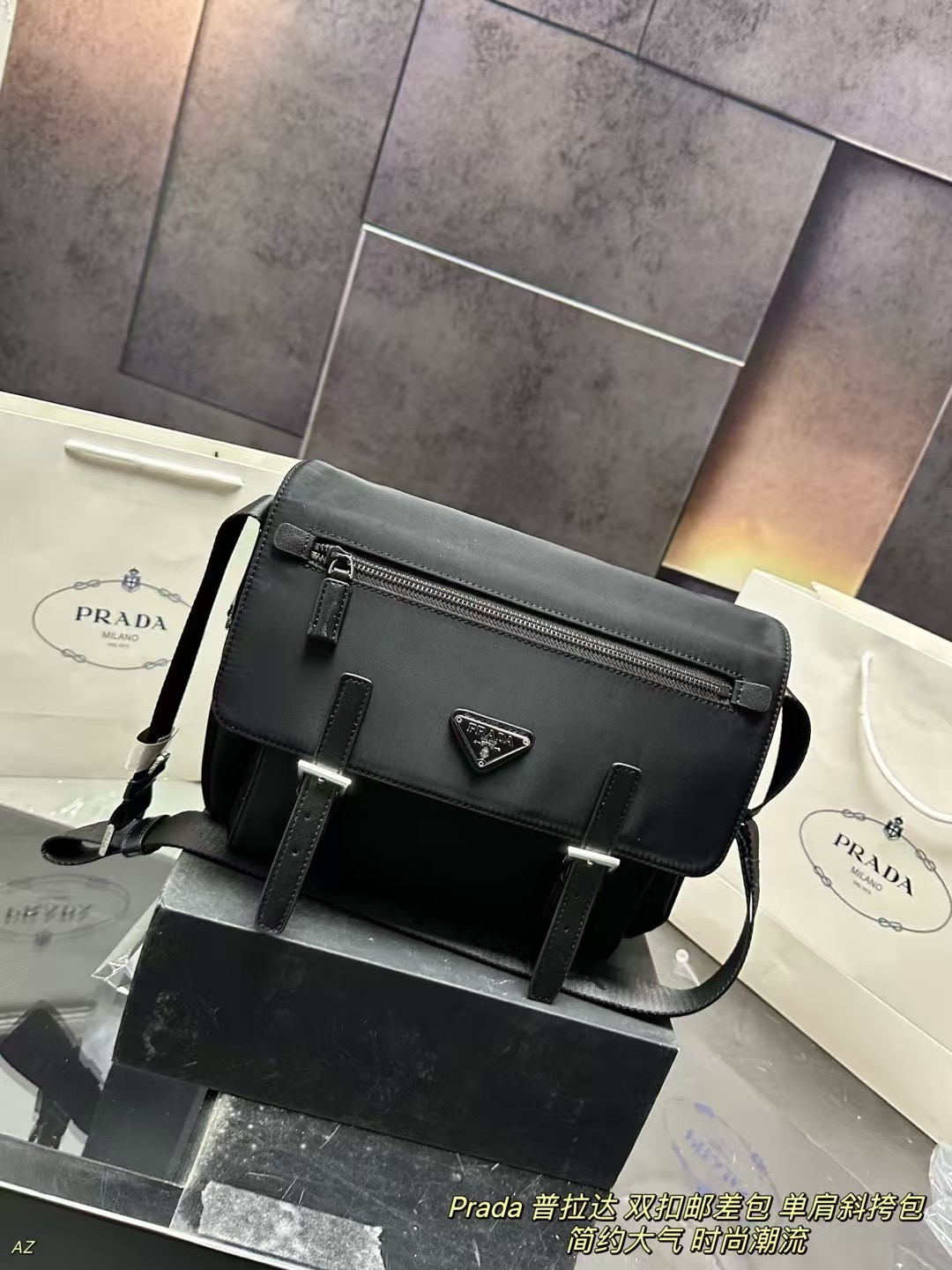 Prada Double Buckle Messenger Bag (30×25cm) - Signature Nylon, Work & Casual