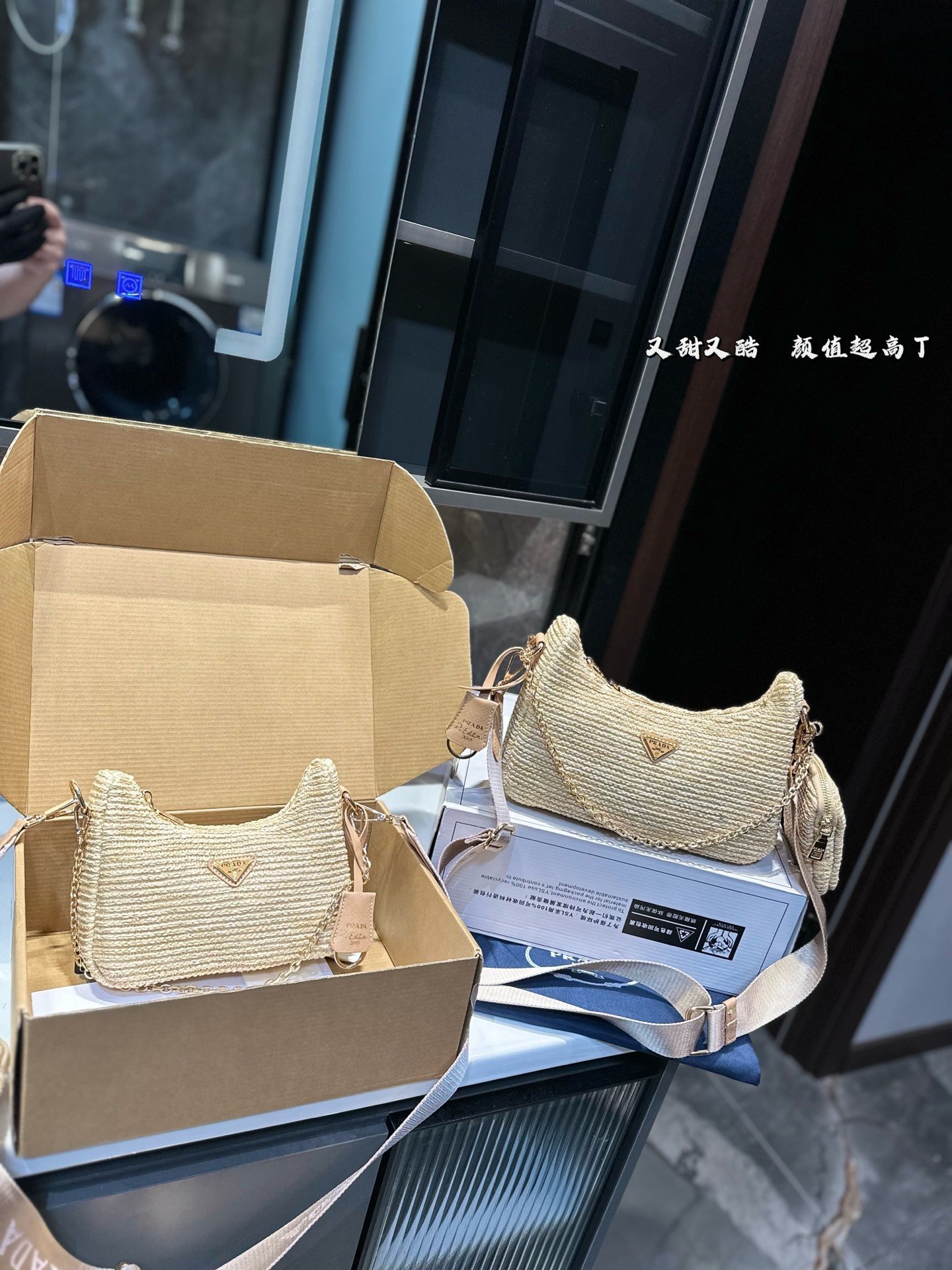 Prada Straw Hobo Underarm Bag (Large 24cm/Small 20cm) with Gift Box