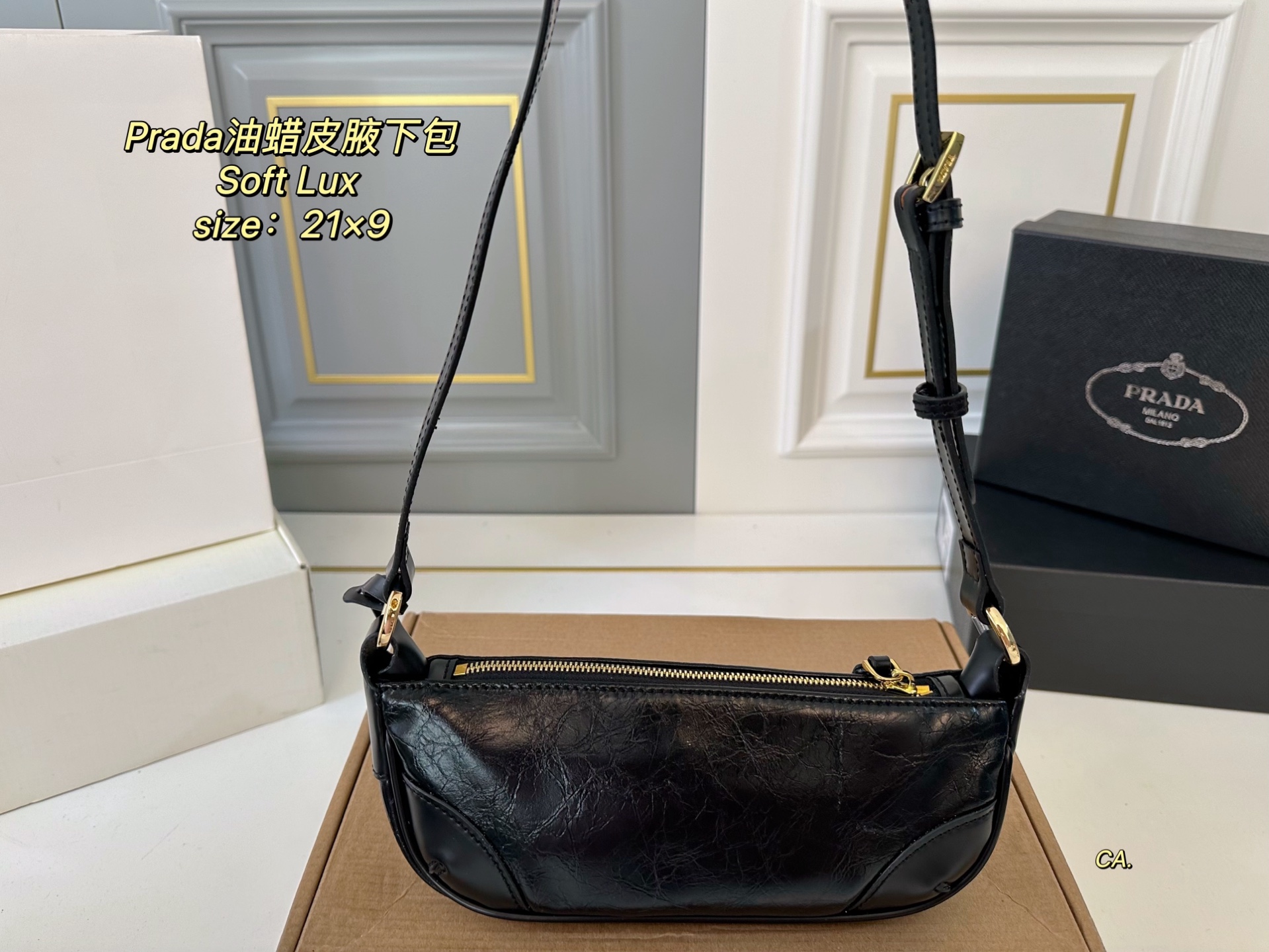 Prada New Soft Lux Waxed Leather Underarm Bag (21×9cm) with Box