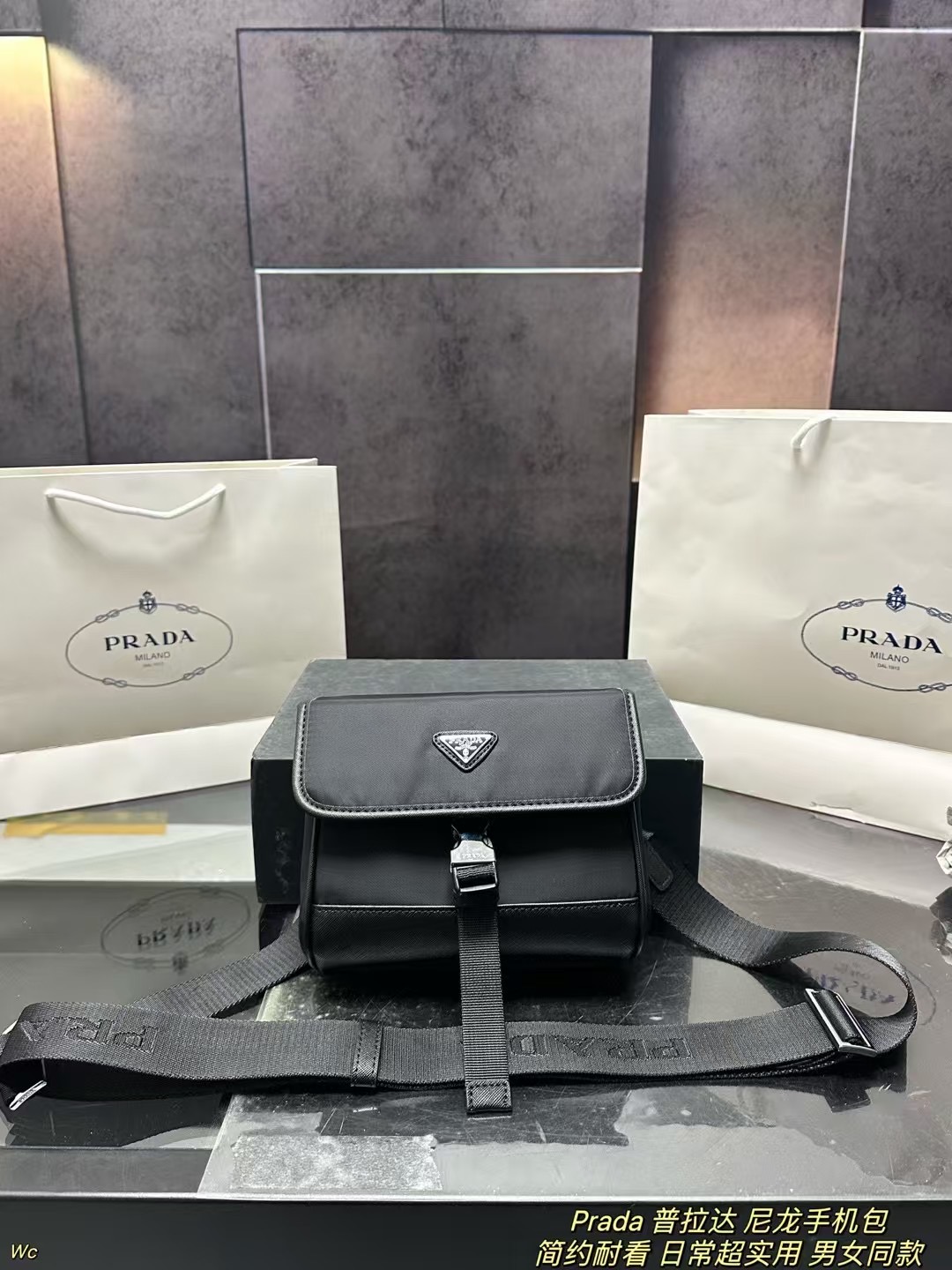 Prada Nylon Phone Bag (20×17cm) with Box - Adjustable Strap