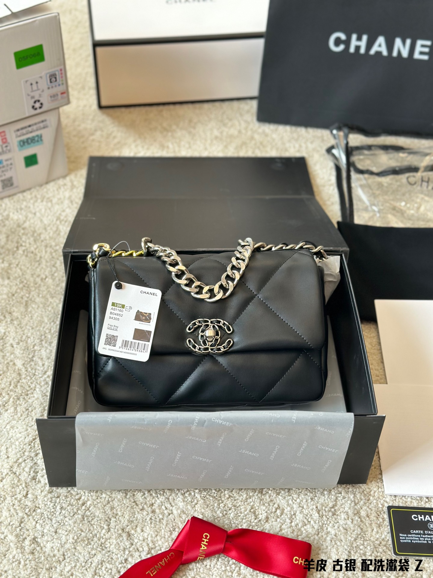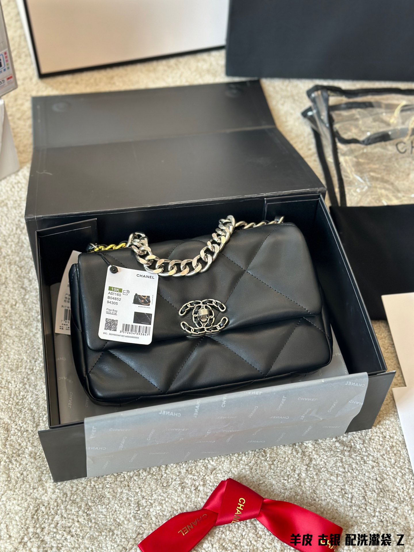 Chanel 19 Antique Silver Flap Bag | 26cm Lambskin | Full Gift Box