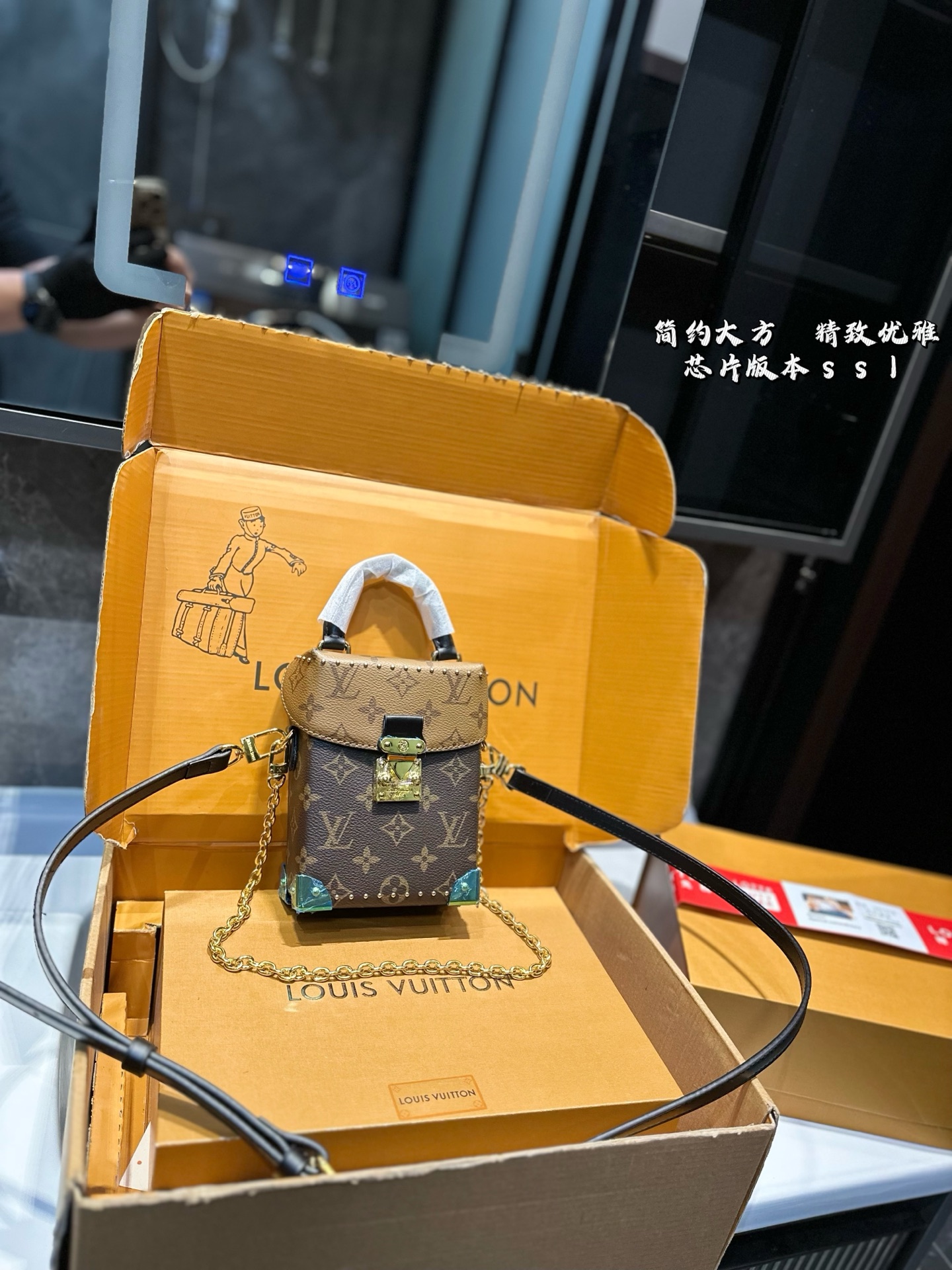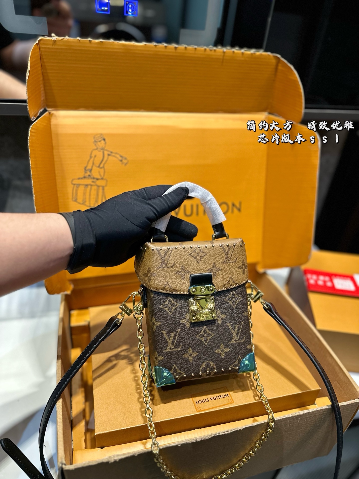 LV 25A Trunk Chain Box Bag 18x12x7cm