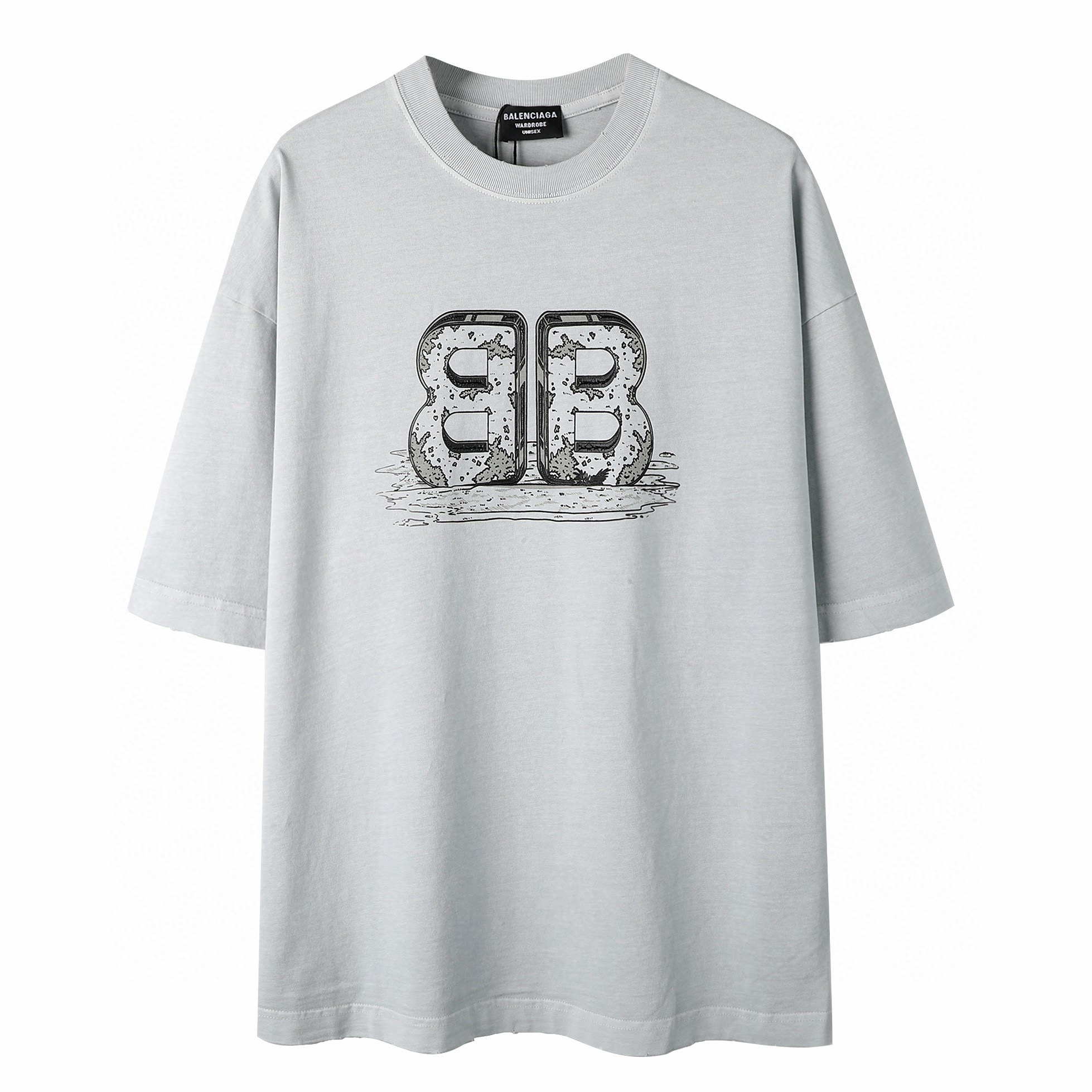 Balenciaga DUST Baby Short Sleeve Tee | 260G Combed Cotton | Reinforced Shoulder | Premium Print | Unisex | White/Black/Dark Gray | M-XL