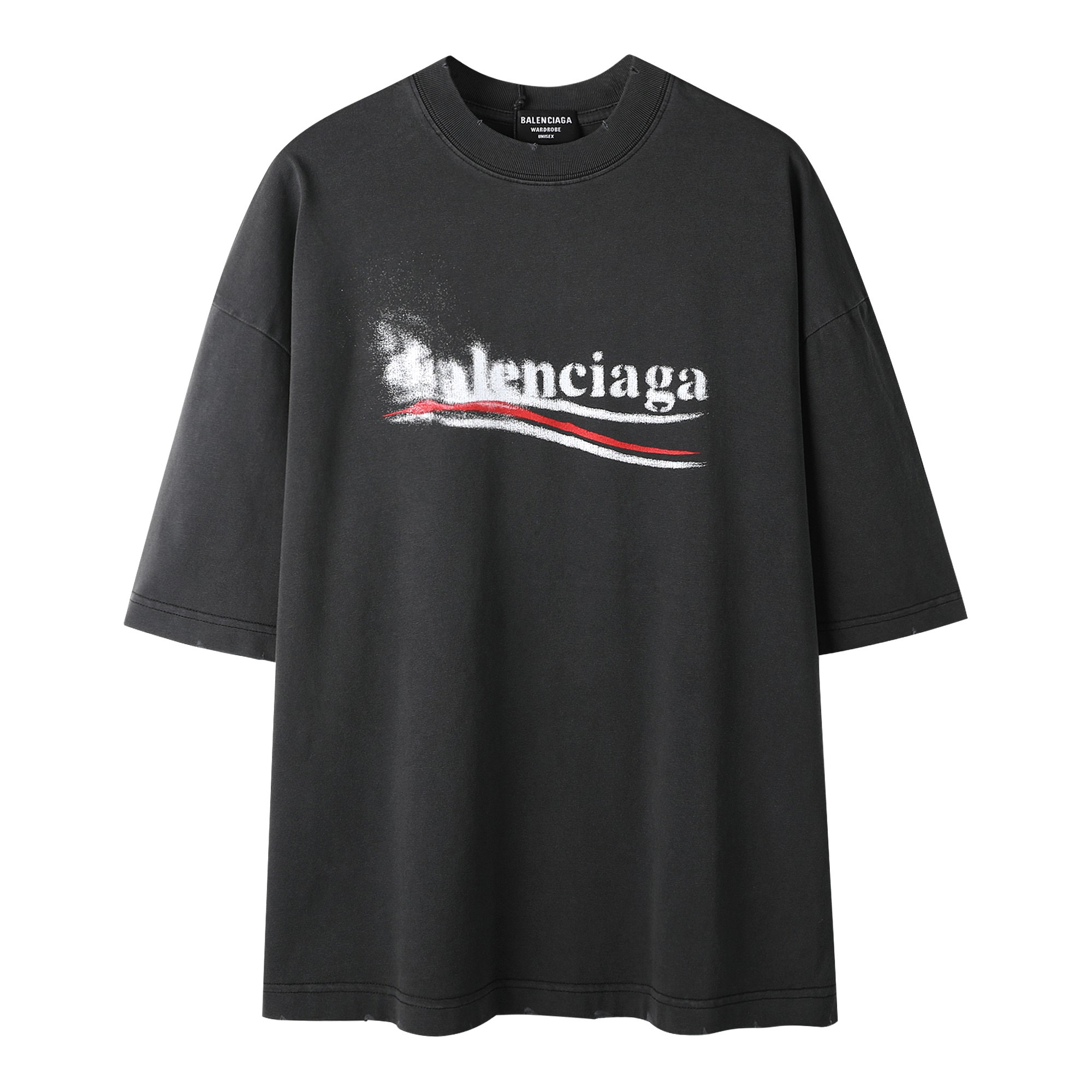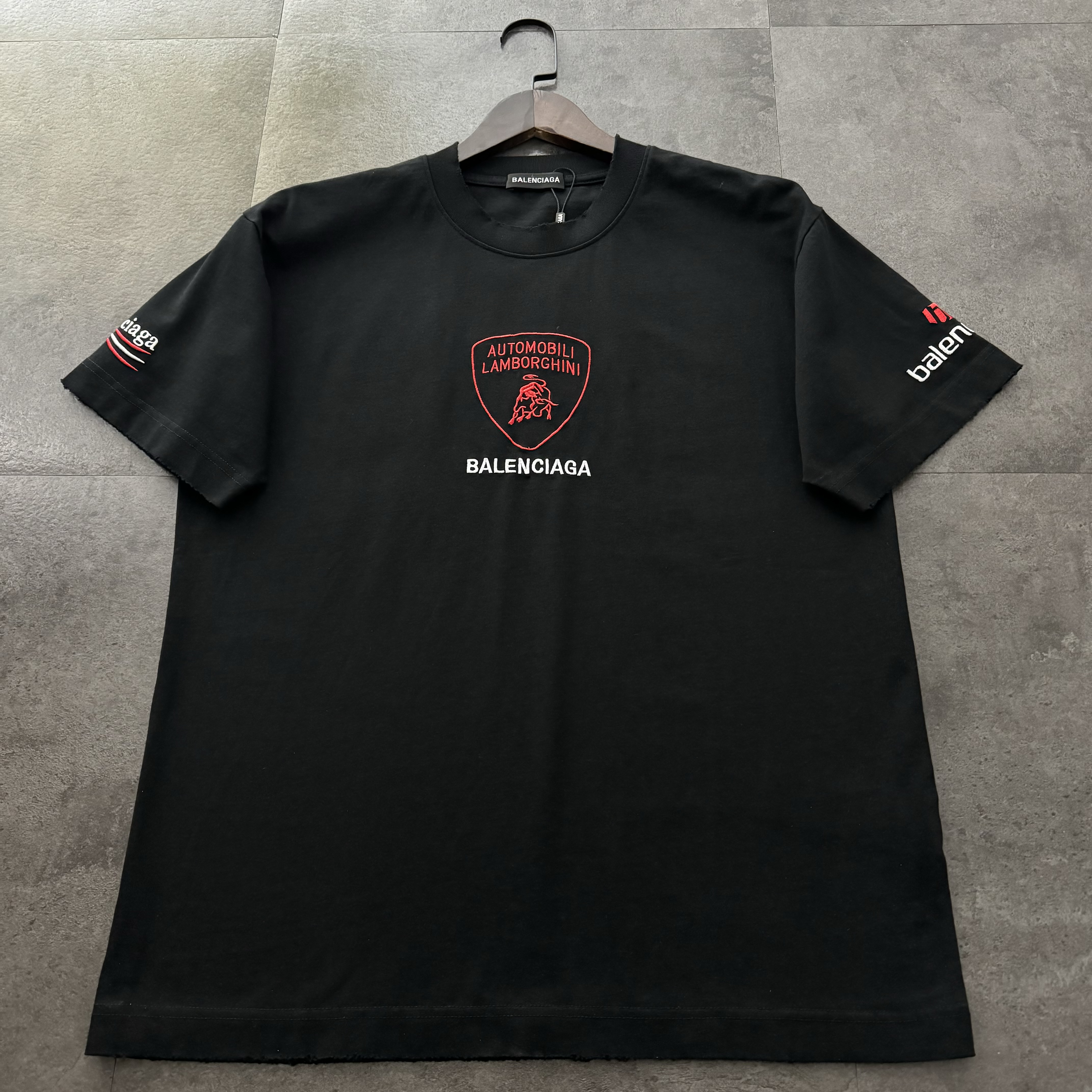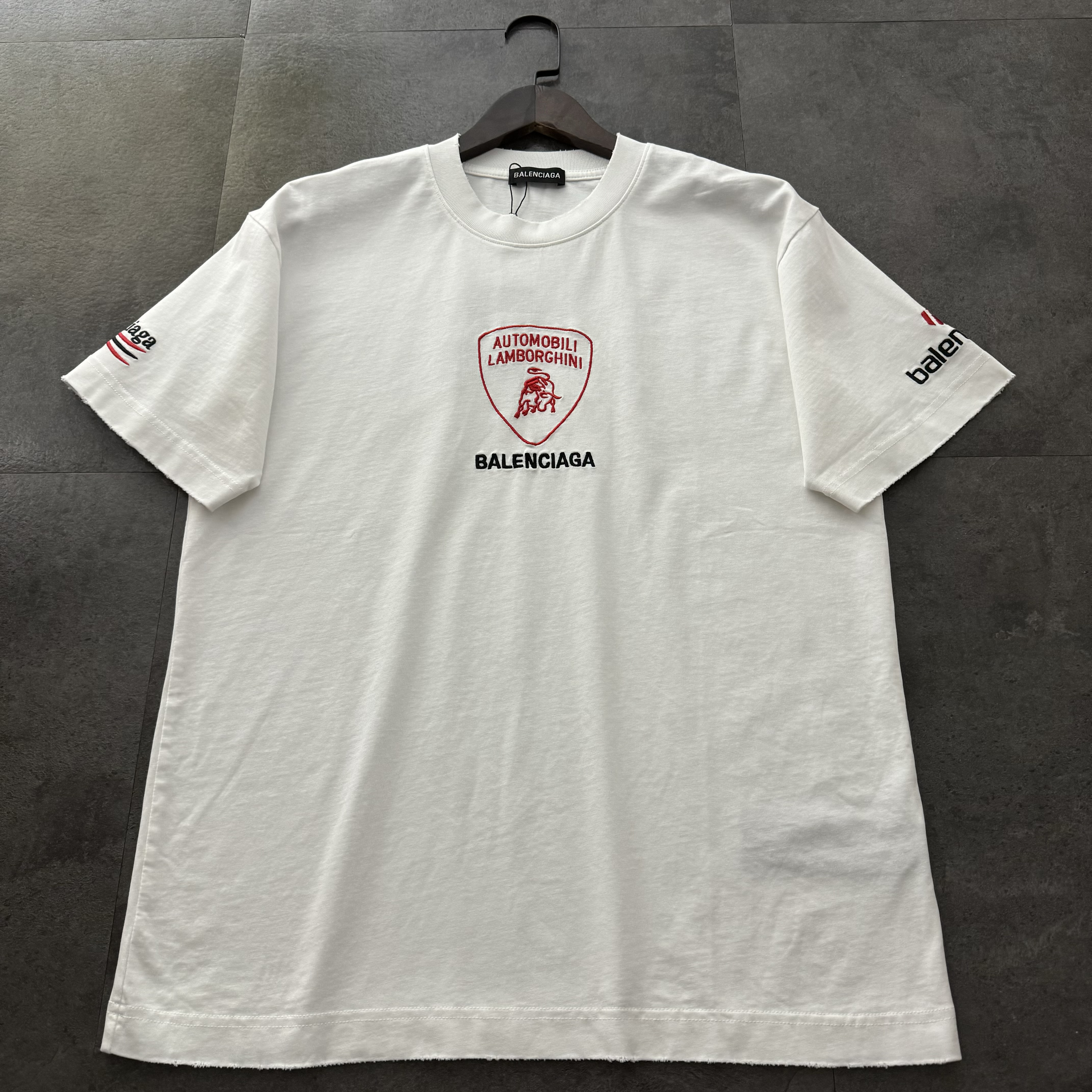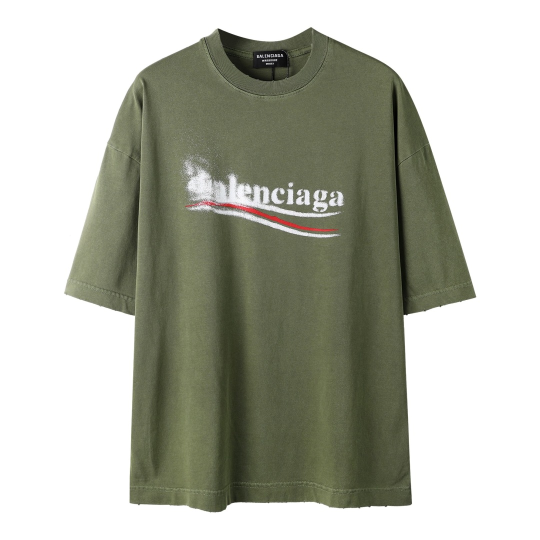 Balenciaga 2025 New Logo Embroidered T-Shirt | 32-Single 280g Custom Cotton | Double Sleeve Logo + Washed Distressed | Full Tags | Unisex | S-2XL