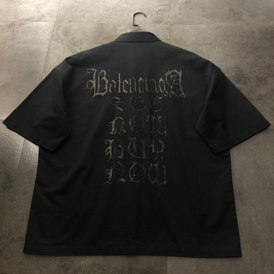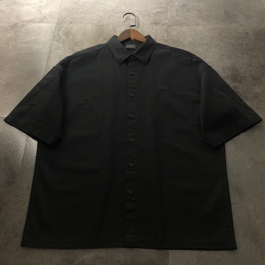 Balenciaga 2025 Sanskrit Print Short Sleeve Shirt | Gothic Mud-Dye | Logo Embroidery | Premium Cotton | Oversize Fit | Unisex | M-2XL