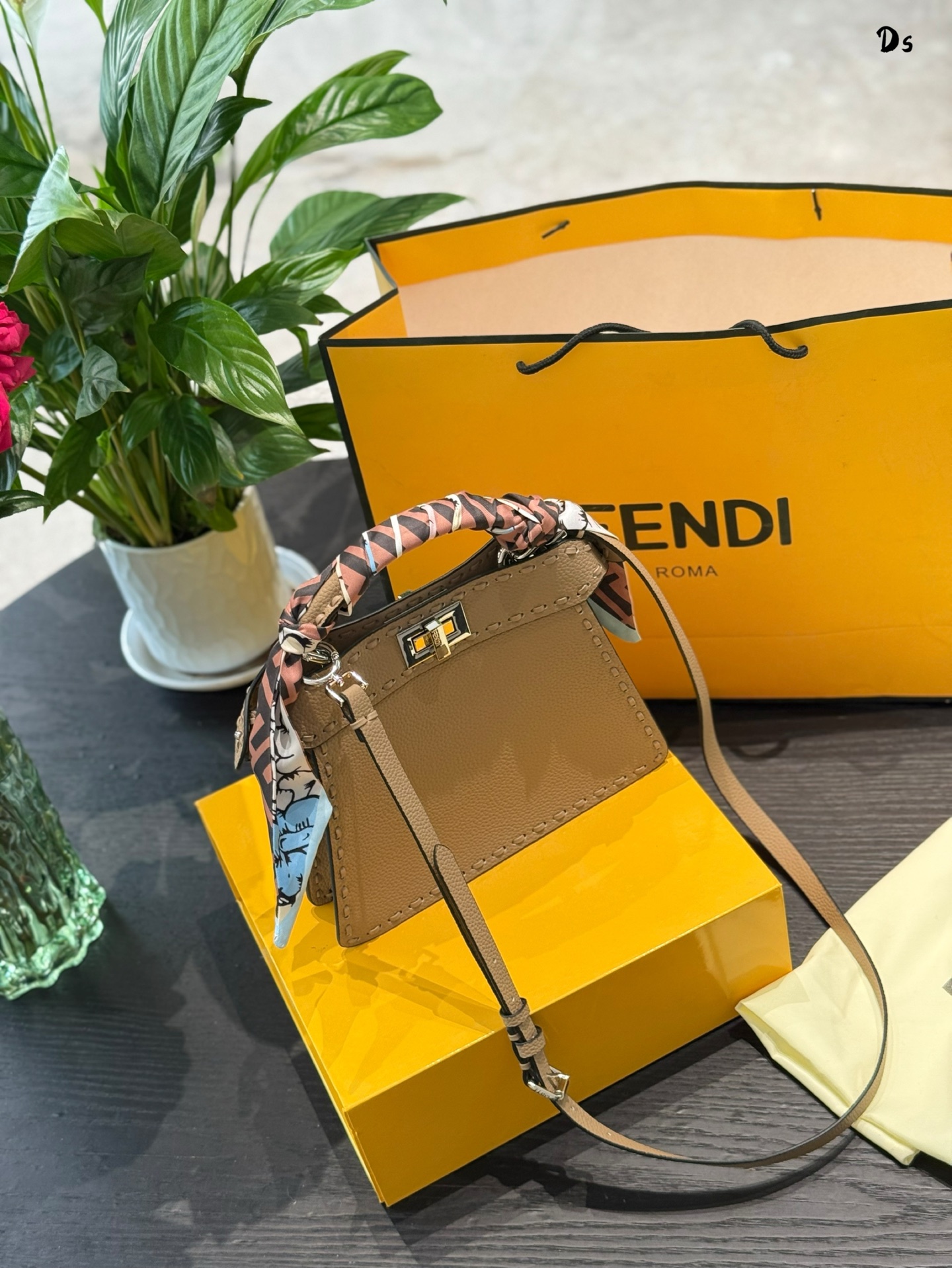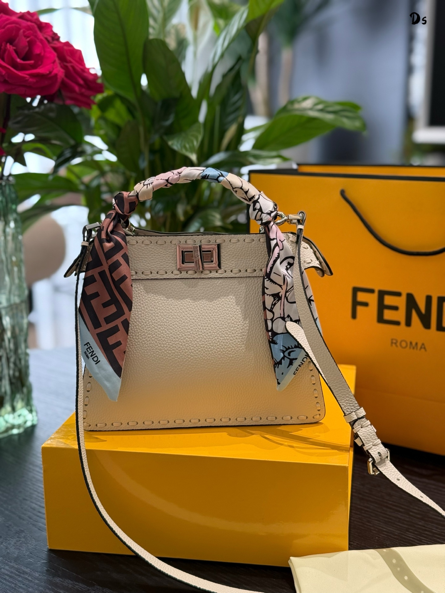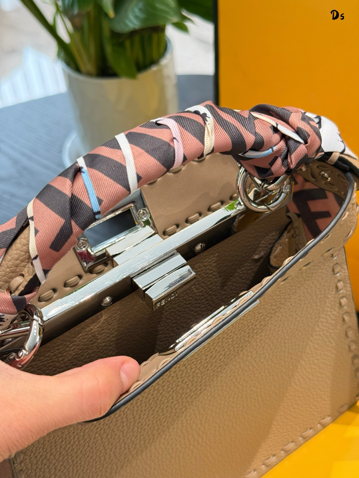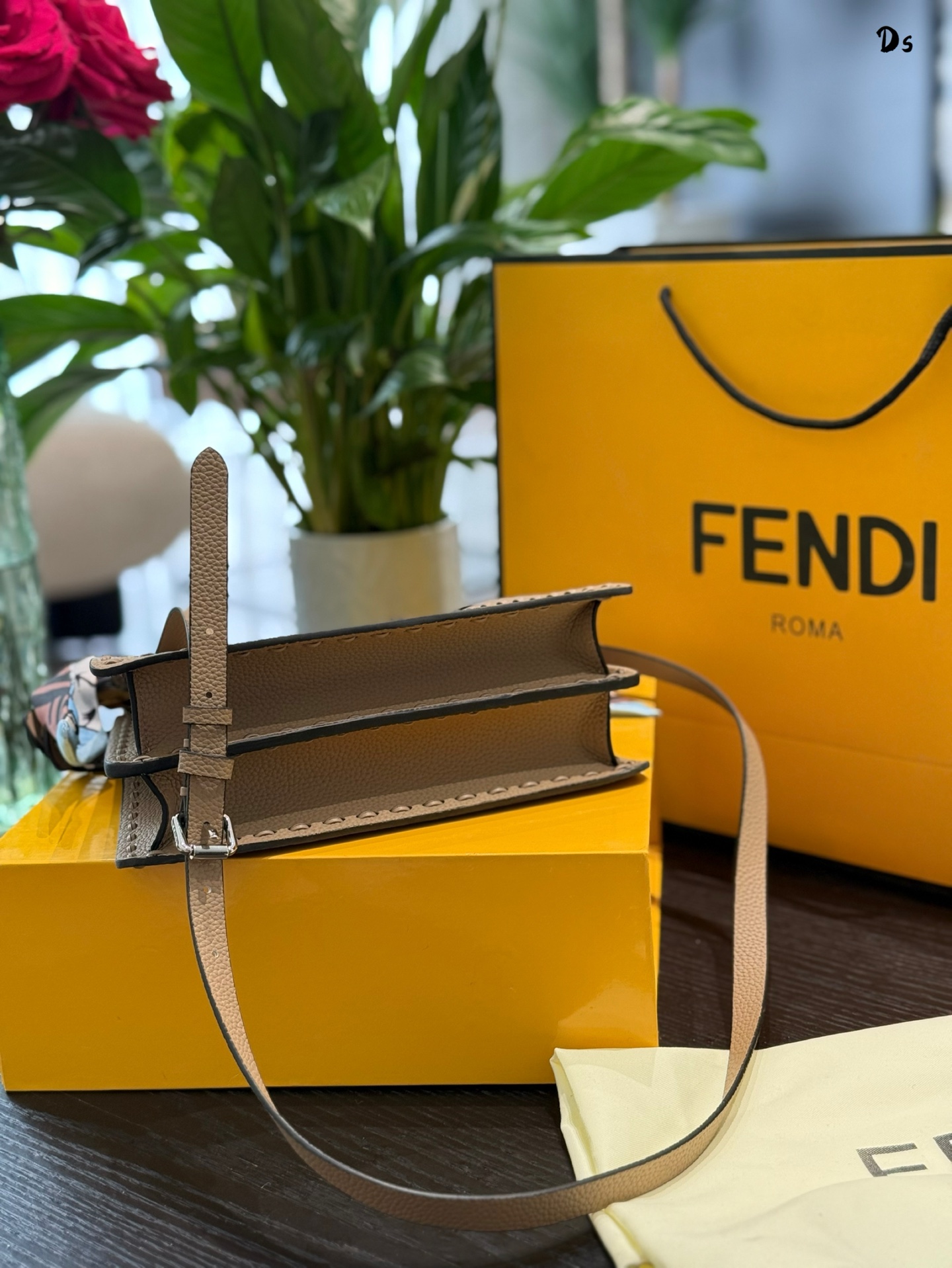 ▸ Signature Details• ISeeU cut-out construction• Detachable 50cm leather strap• FF metal clasp