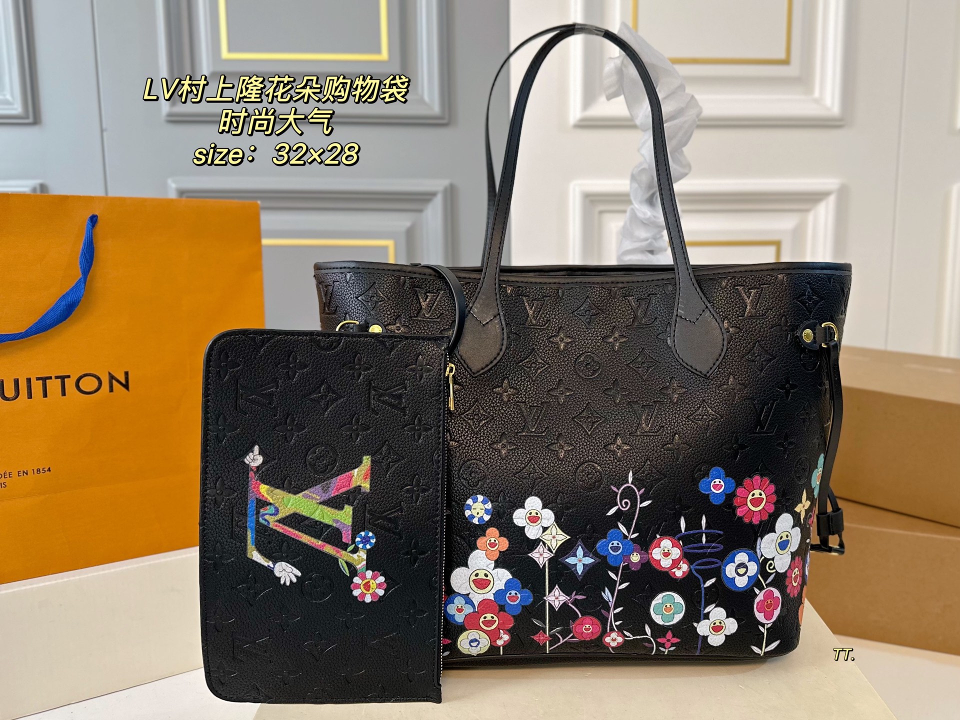 LV Murakami Flower Shopper Tote 32x28cm