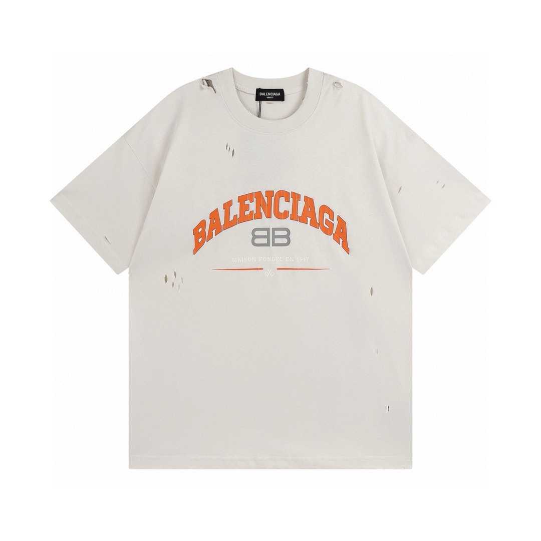 BALENCIAGA 2025 SS Distressed BB Logo Cracked Print T-Shirt | 260GSM Washed Cotton | Vintage Rip Detail | 1:1 Replica