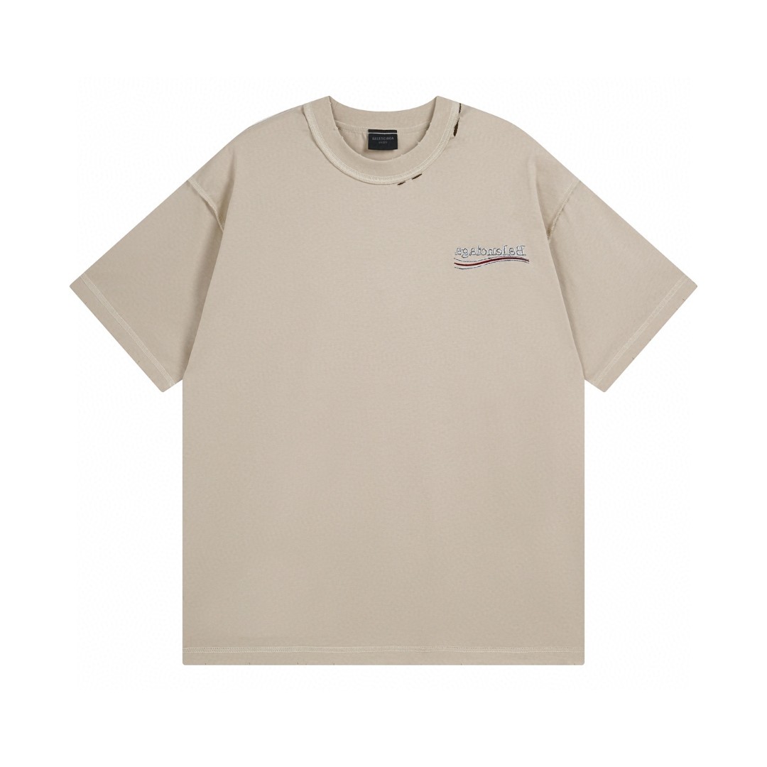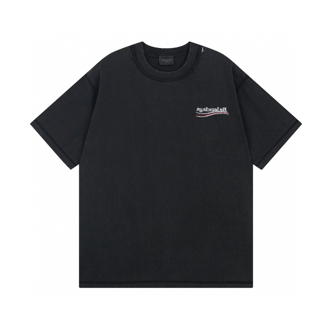 BALENCIAGA 2025 SS Embroidered Logo T-Shirt | 260G Heavyweight Cotton | Premium Stitch Craft | Oversized Streetwear