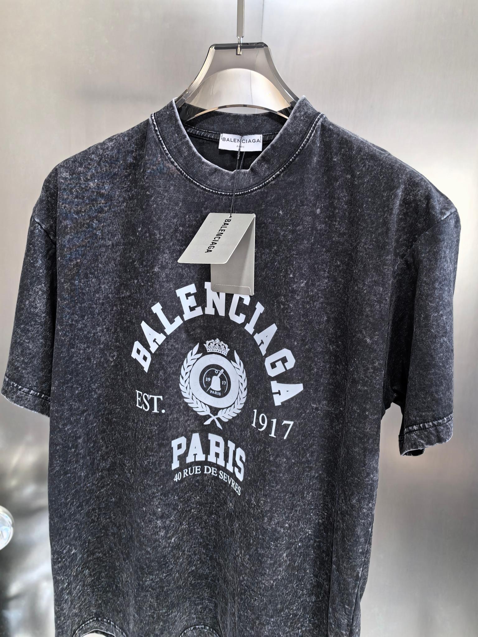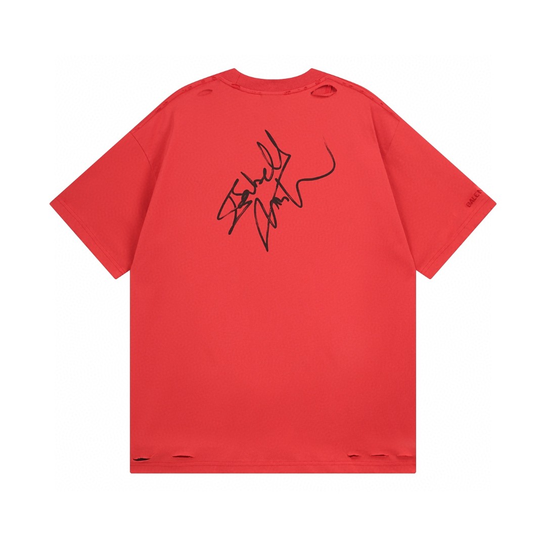 BALENCIAGA 2025 SS ISABELLE Signature Artwork Vintage Wash T-Shirt | 260g Heavy Cotton | Distressed Embroidery & Digital Print