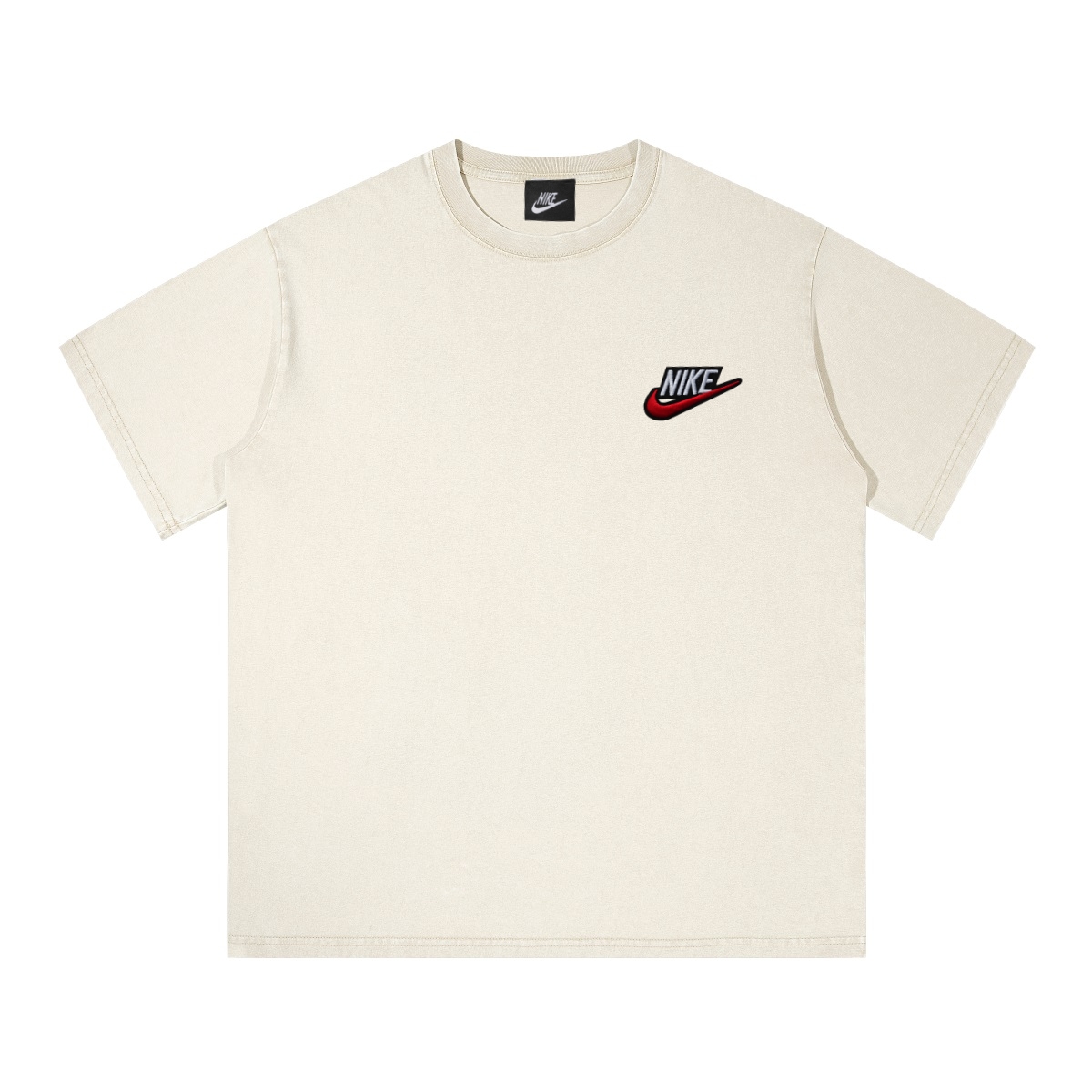 💰 Nike Color-Block Embroidered Washed Tee – Premium Cotton Vintage Wash (Black/White) | Unisex Casual Essential